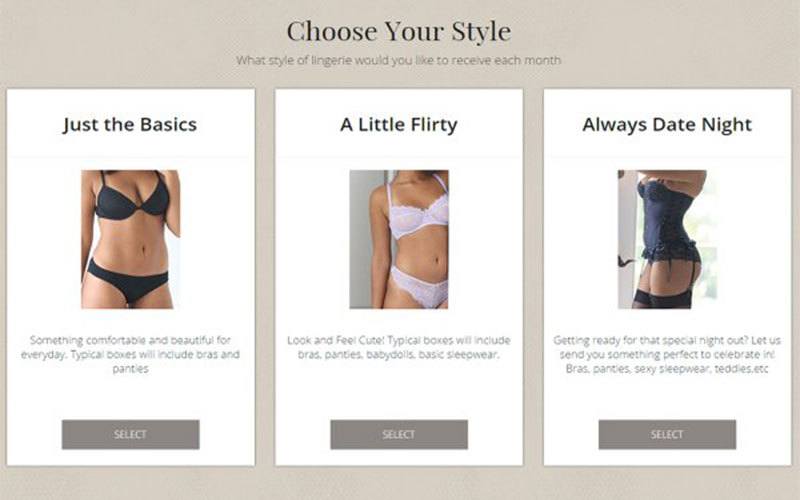 They have different subscription options to suit all personality types, from a “Just the Basics” box which would feature a basic set of bra and undies, “A Little Flirty” box, which comes with bra and panty sets that are a little naughtier and sexier, as well as an “Every Night is Date Night” box, that comes with things like corsets, teddies, and other sexy accessories.